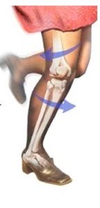 Meestal is er een draaimaneuver met gestrekte knie en geblokkeerde voet.