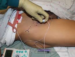De ingreep gebeurt onder een korte algemene narcose en een bijkomende lokale verdoving (femoraal block, Hunter kanaalblock).