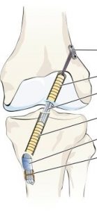 De gescheurde kruisband wordt vervangen door een nieuwe stevige structuur, meestal een pees.