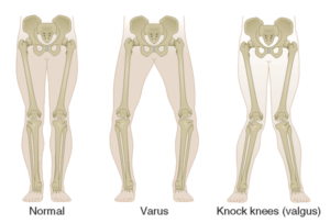 Patiënten met asafwijkingen ter hoogte van de benen kunnen vroegtijdige kraakbeenslijtage of artrose ontwikkelen aan de binnenzijde van de knie (O-benen) of aan de buitenzijde van de knie (X-benen).