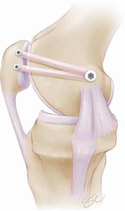Het gescheurde MPFL ligament wordt gereconstrueerd met een eigen pees (hamstringpees). Dit is zeer gelijkaardig met de pezen die gebruikt worden bij een voorste kruisband herstel. De nieuwe pees wordt aan de binnenkant van de knieschijf verankerd met 2 schroefjes en ter hoogte van de binnenzijde van het dijbeen met 1 schroef. Op die manier wordt een nieuwe stevige gewrichtsband onder de juiste spanning gecreëerd die verhindert dat de knieschijf terug luxeert.