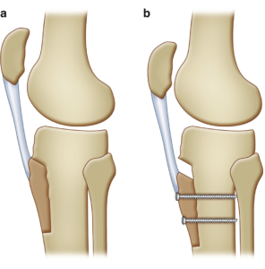Indien de knieschijf te hoog staat (patella alta) of indien de inplanting van de pees van de knieschijf op het onderbeen te veel naar buiten is (te hoge TAGT), is een MPFL reconstructie alleen vaak onvoldoende en dient een bijkomende ingreep te gebeuren.