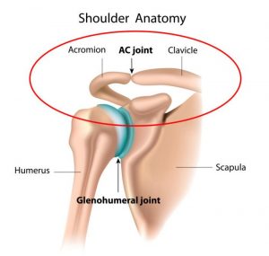 Het gewricht tussen het sleutelbeen (clavicula) en het dak van de schouder (acromion): het acromioclaviculair gewricht of het AC gewricht.