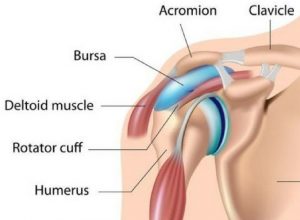 Een slijmbeurs is een klein zakje gevuld met een kleine hoeveelheid gewrichtsvloeistof (smeermiddel). De slijmbeurs ter hoogte van de schouder verhindert de wrijving van de rotator cuff pezen tegen het dak van de schouder.