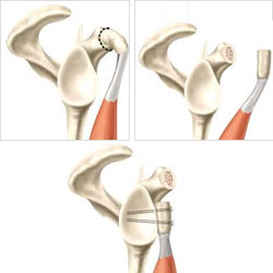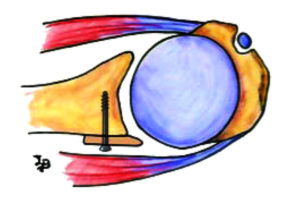 Een stukje bot van 3x2cm wordt weggenomen ter hoogte van de bekkenkam en nadien vast geschroefd ter hoogte van het letsel van de kom. Op die manier wordt het oppervlak van de kom groter gemaakt.