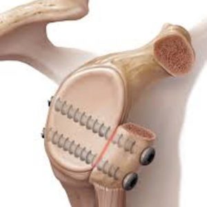 Tijdens de kijkoperatie wordt het afgescheurde labrum en kapsel terug vastgehecht aan het bot van de kom (glenoid) door speciale ankertjes met draad. Door deze hechting worden de gewrichtsbanden ook terug aangespannen. Deze ankertjes hoeven niet meer verwijderd te worden.